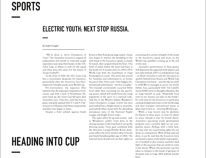 - UTS Vertigo Newspaper, Electric Youth: Next Stop Russia, February 18, 2015.